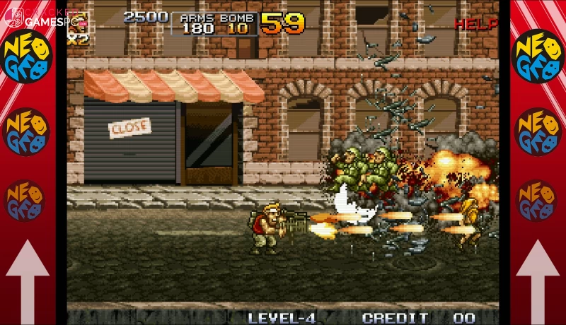 METAL SLUG 4 is an action shooting game released by SNK in 2002 and it marks the fifth title in the METAL SLUG series. In addition to Marco and Fio, brand new characters Trevor and Nadia have also joined the battle! Use new items effectively and get the highest score with the new Metallish System!
